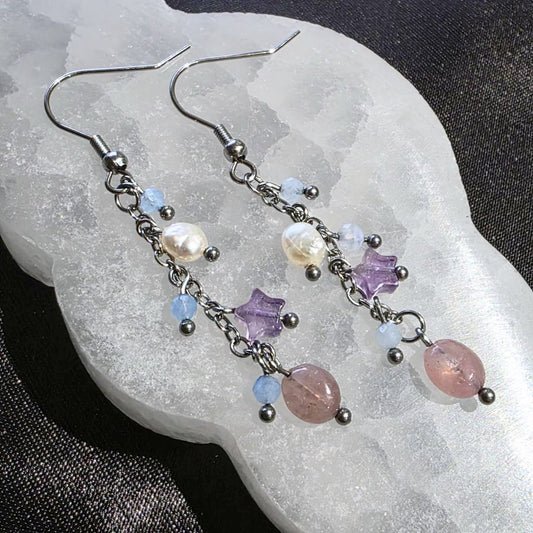 Sterling Silver Moss Agate & Lepidolite Earrings