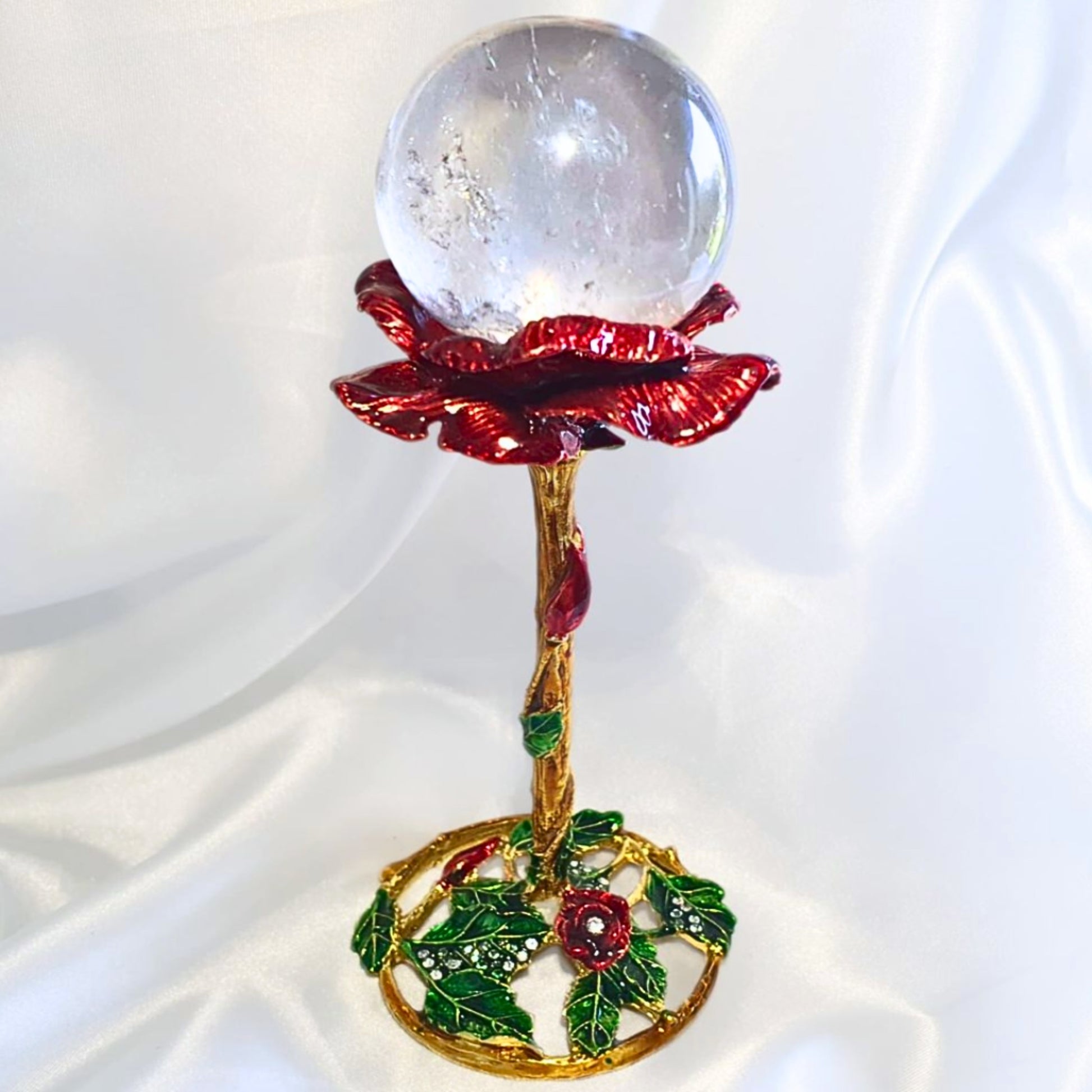 Enamel Rose Metal Sphere Holder (13cm tall)