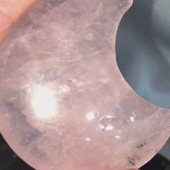 A beautiful gemmy Rose Quartz with rainbows and a shimmers through the translucent pink colour