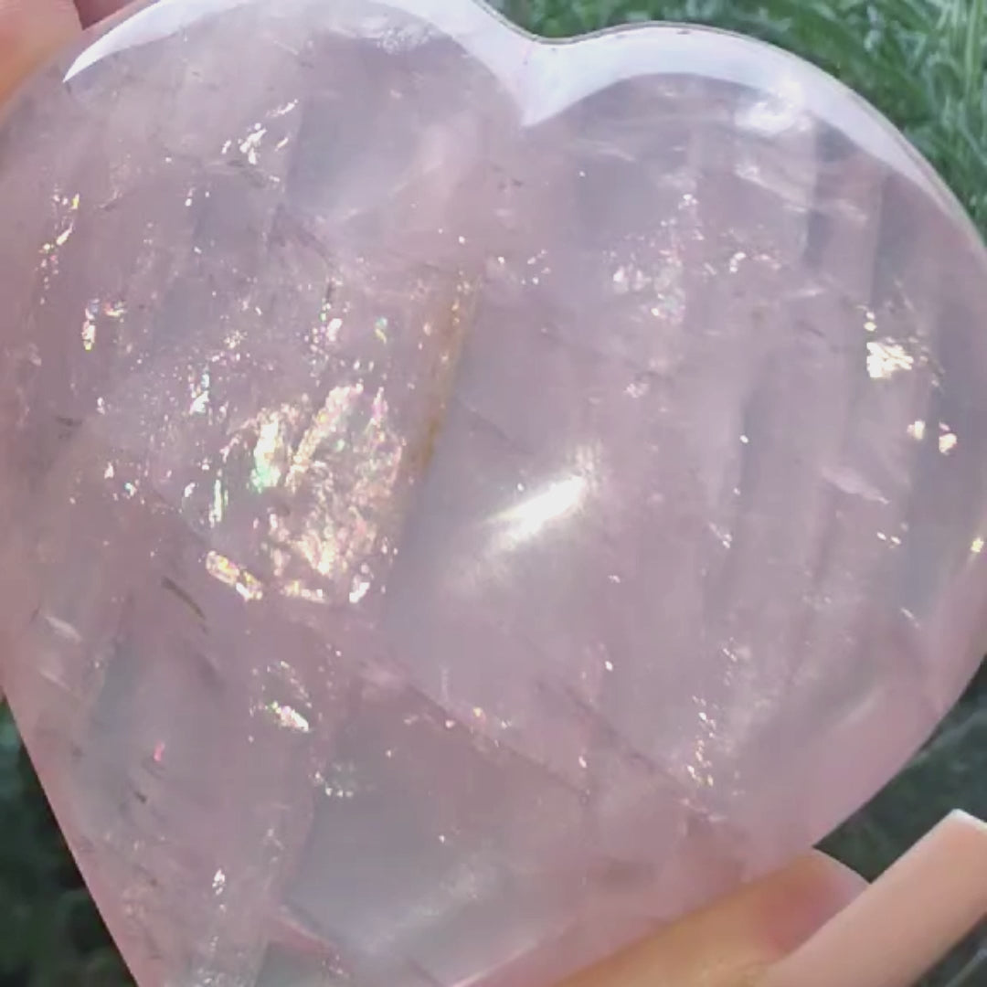 This puffy Rose Quartz heart carving has amazing phantom banding inclusions and rainbows throughout - from Brazil