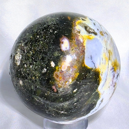 Large Pink, Green & White Druzy Ocean Jasper Sphere - 460g