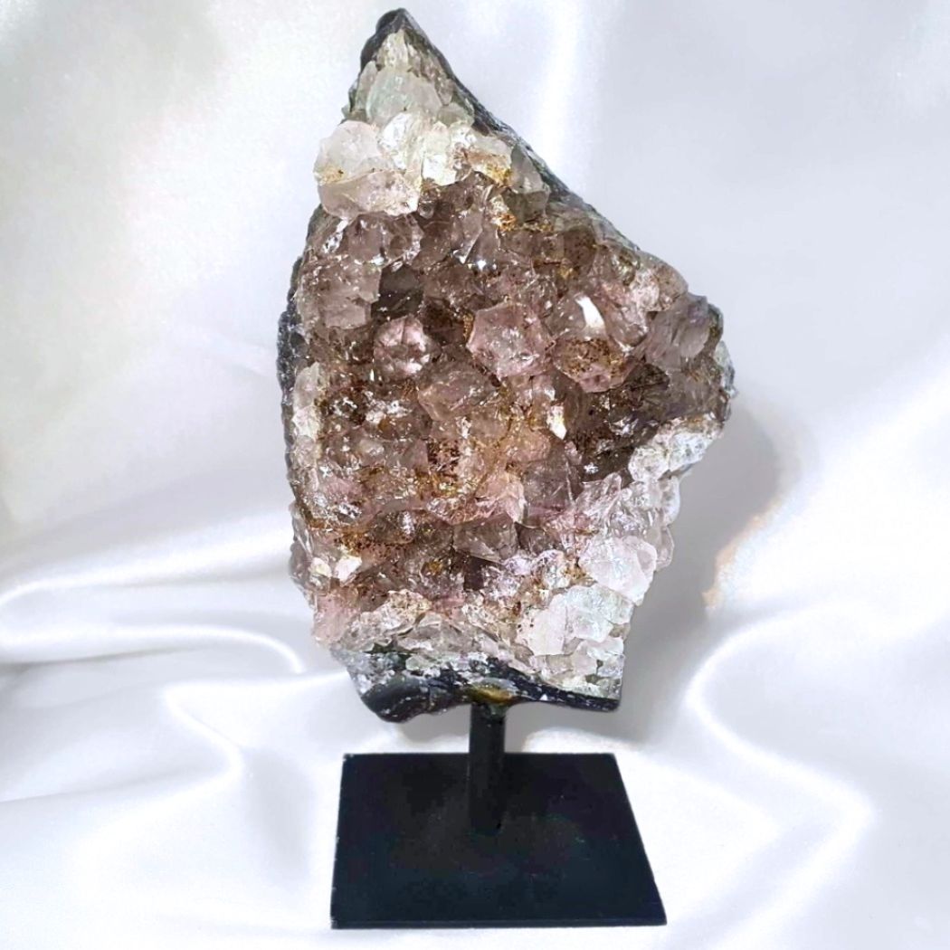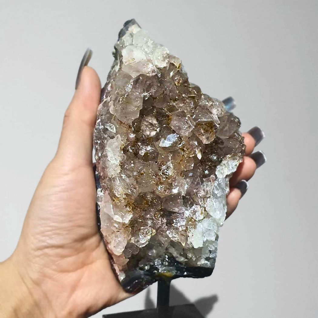 Smoky Quartz with Cacoxenite Cluster on Metal Stand - 690g