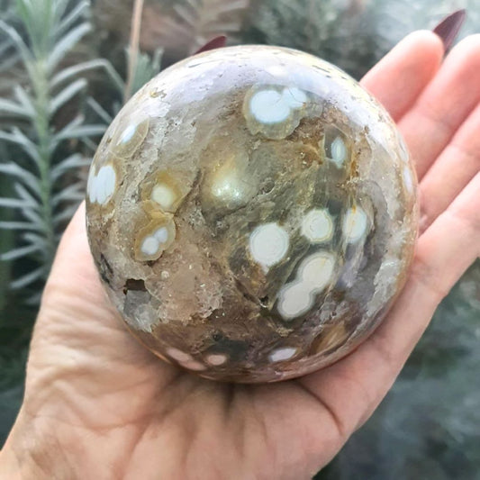 Druzy Orbicular Ocean Jasper Slab with Holder