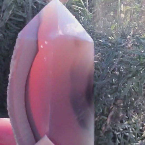This unique Agate tower has natural blue-grey shades with banding and a large sparkling open druzy cave - from Brazil