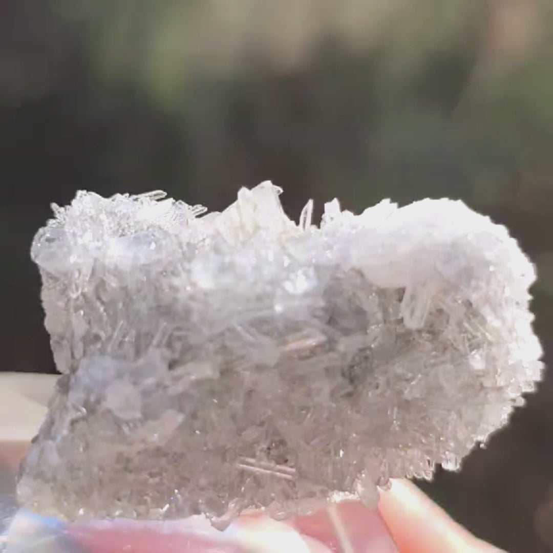 A beautiful cluster with complete intact needle Quartz and Calcite crystals - rainbows can be seen through the crystal tips from Fujian China - where highly sought after specimens are mined from