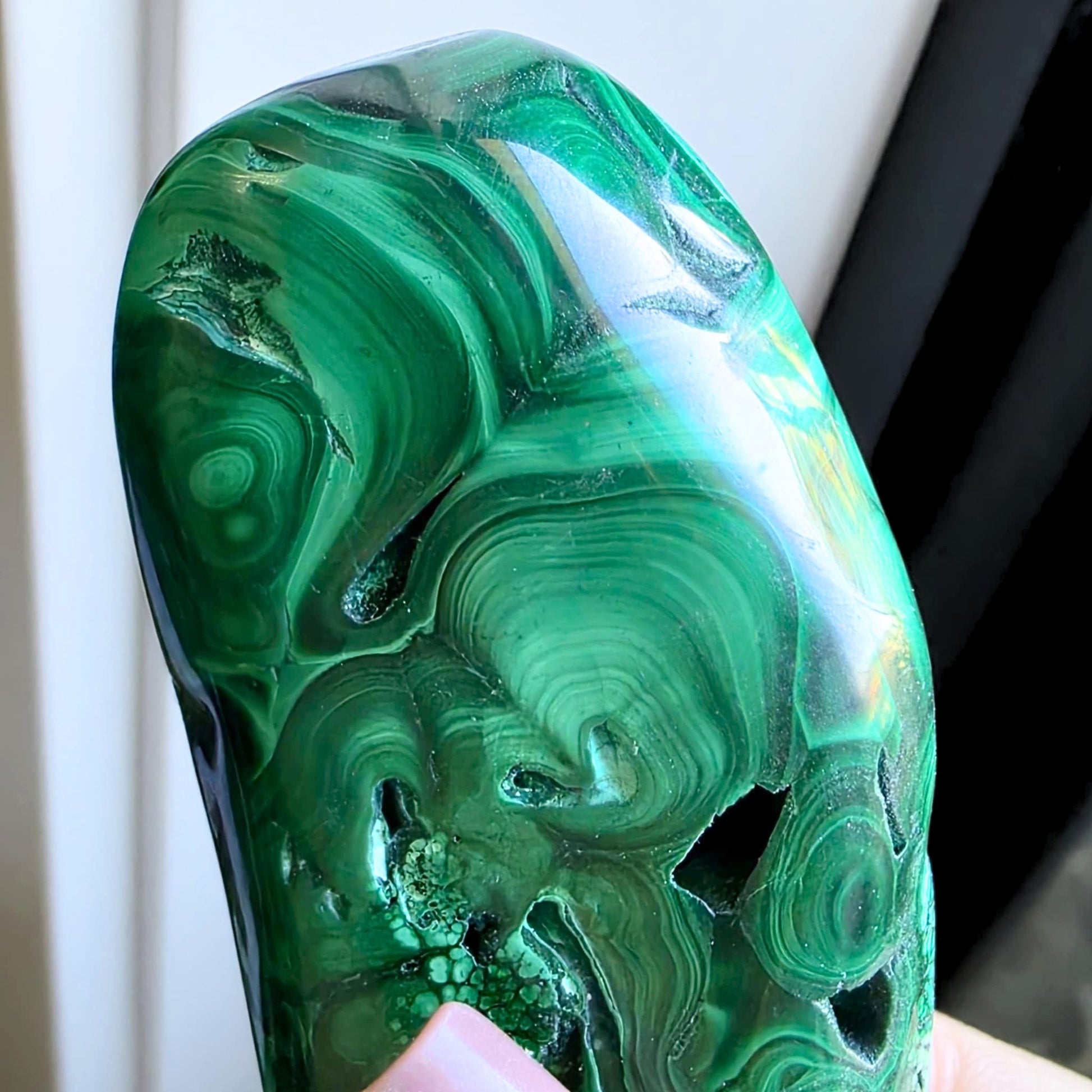 Sourced from the Democratic Republic of Congo, this richly banded malachite freeform showcases the classic concentric formations and deep emerald saturation that Congo Malachite is renowned for.
