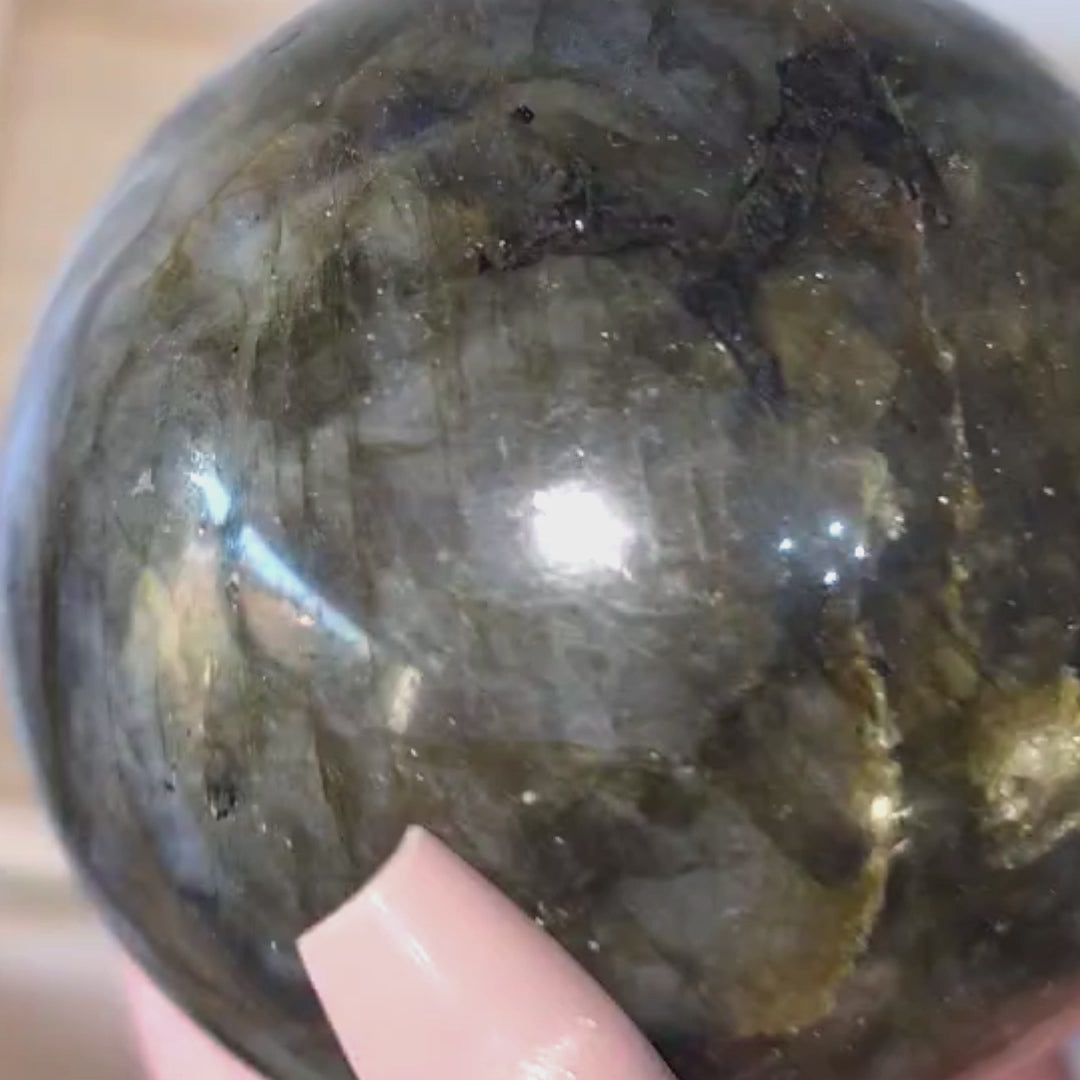 Labradorite Sphere with Black Tourmaline & Blue Flash - 369g