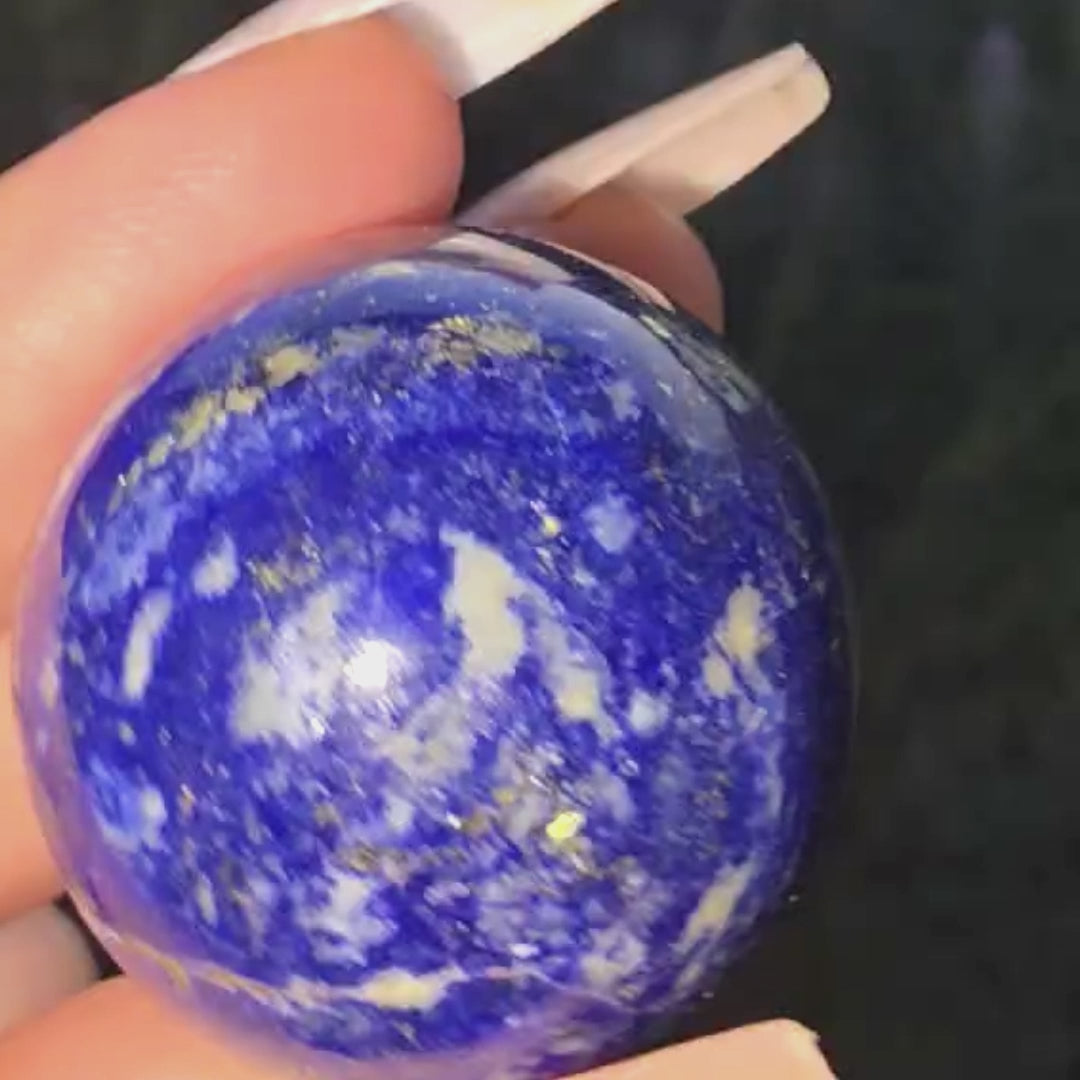 This high grade Lapis Lazuli sphere has a natural vibrant blue colour and metallic Pyrite specks and veining throughout