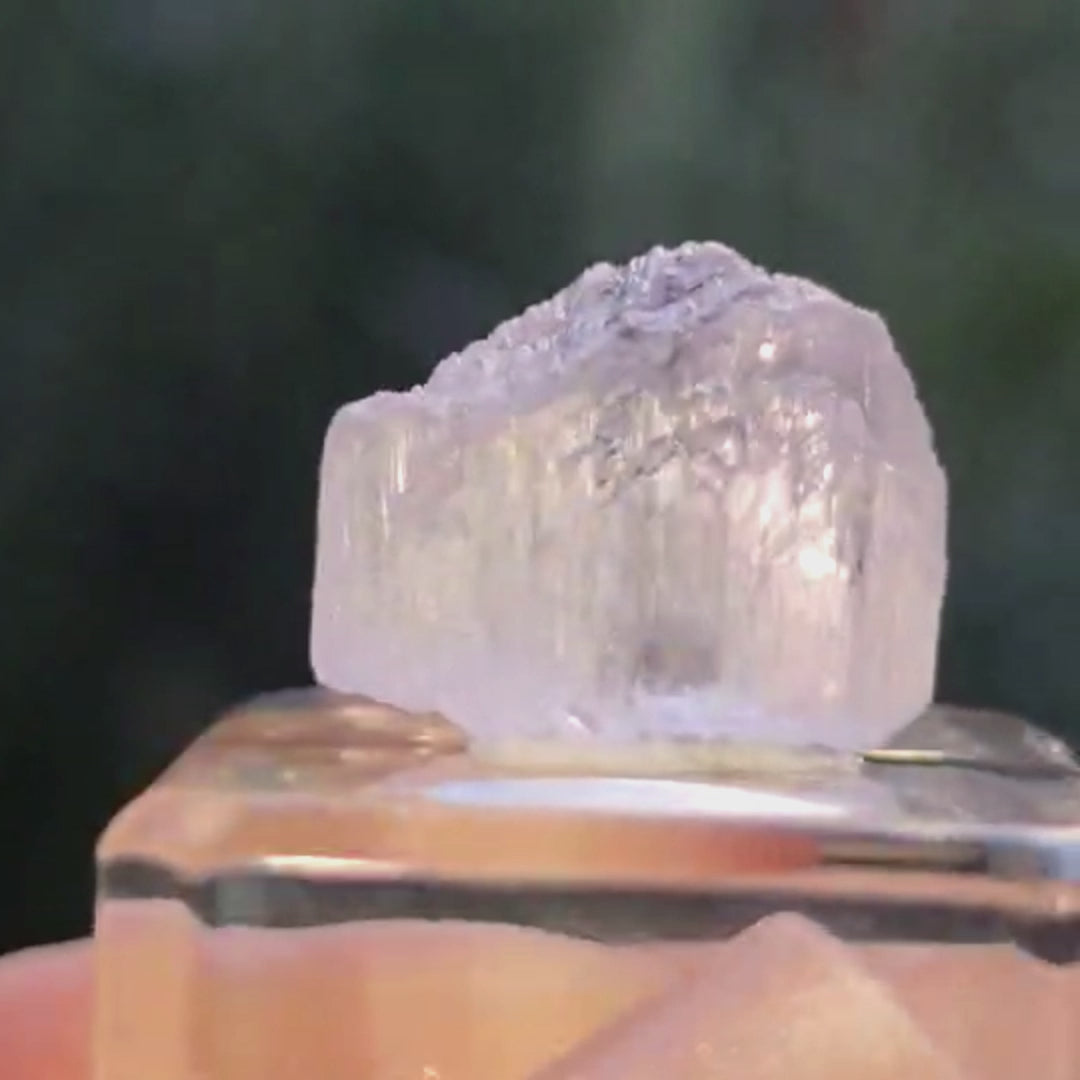This high grade Kunzite specimen has a translucent light pink-purple with a rainbow in sunlight from Brazil - will be packaged in a display case (keep out of direct sunlight to preserve its colour