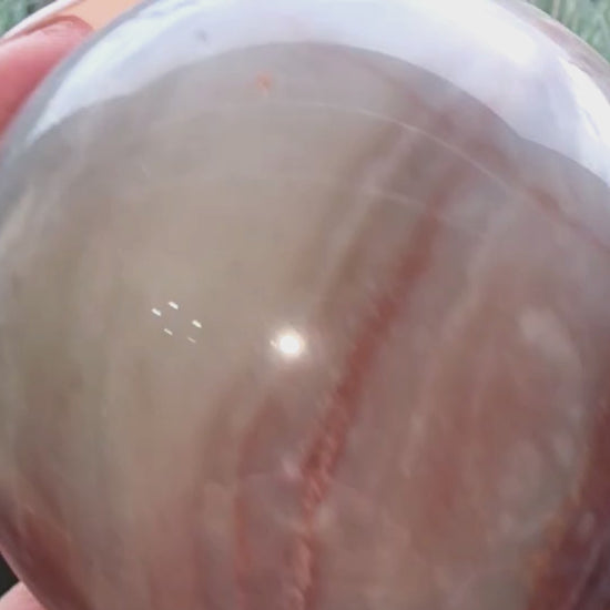 Aventurine is usually in green but this large crystal sphere has natural purple and red swirls instead due to Lepidolite and Hematite inclusions - from Brazil